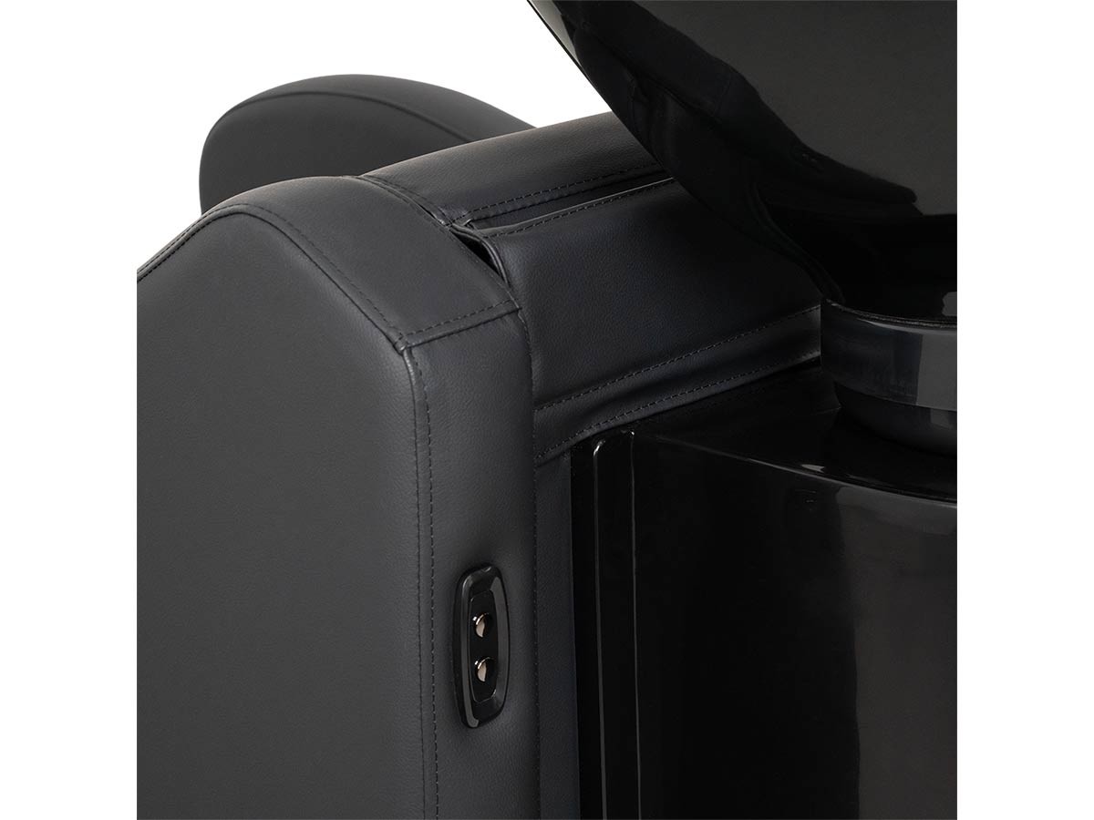 Pour un confort optimal lors des soins, le repose jambes électrique s’ajuste facilement, les jambes et l'assise se relèvent en même temps jusqu'à la position allongée. Les commandes situées à l’arrière permettent de gérer le relève-jambes et d’activer la fonction de massage à air.