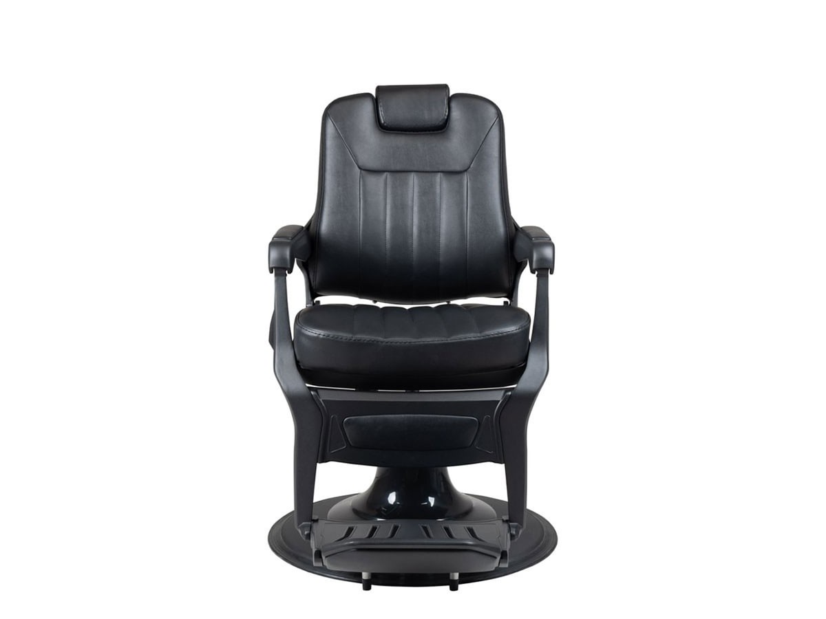 Fauteuil de barbier KALE confortable et élégant, avec assise rembourrée, dossier inclinable, têtière intégrée et repose-pieds. Équipé d’une pompe hydraulique avec frein et d’une base métallique stable, il est idéal pour les professionnels de la coiffure et les barbiers.
