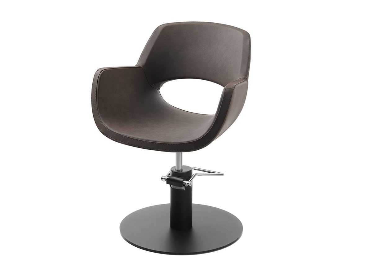 Fauteuil de coiffage NOA, avec pompe hydraulique et recouvert d’une tapisserie en similicuir, parmi les choix proposés.