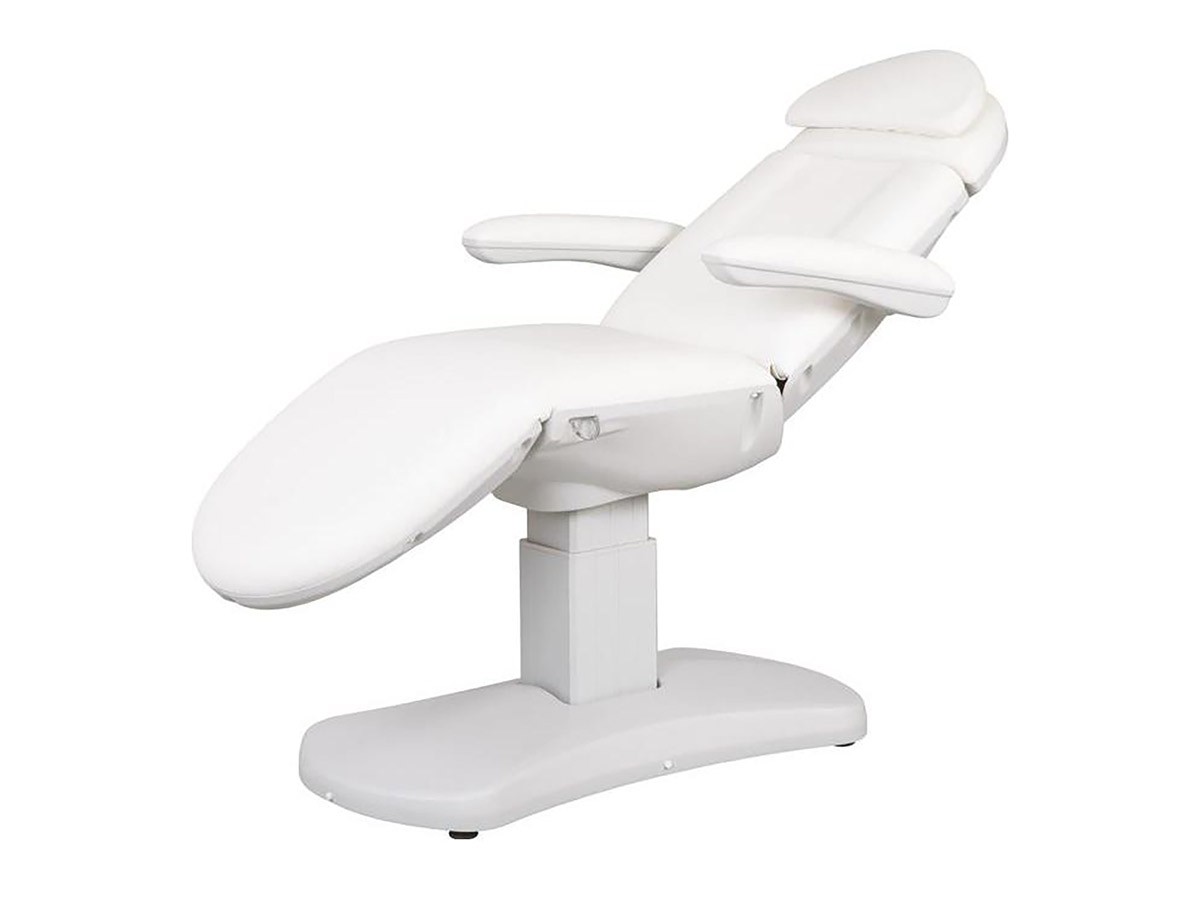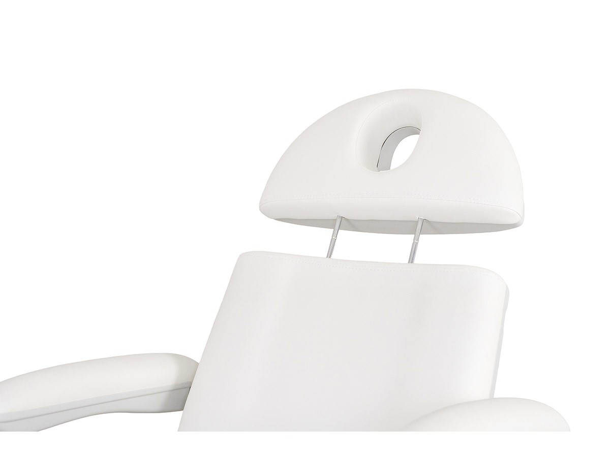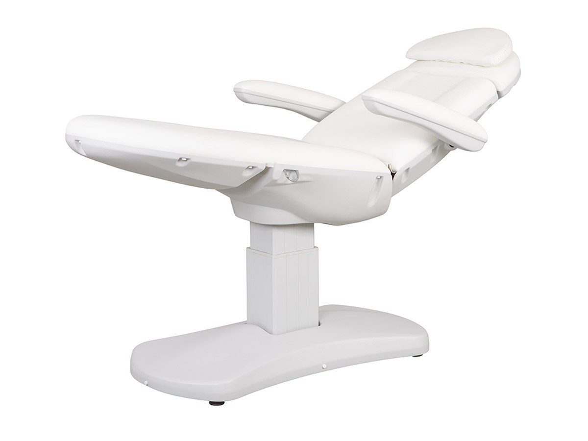 Fauteuil esthétique VOME 3 moteurs, confortable grâce à son rembourrage haute densité, revêtement PU blanc haute qualité, sans couture pour faciliter son entretien. Un design épuré, idéal dans en institut de beauté.