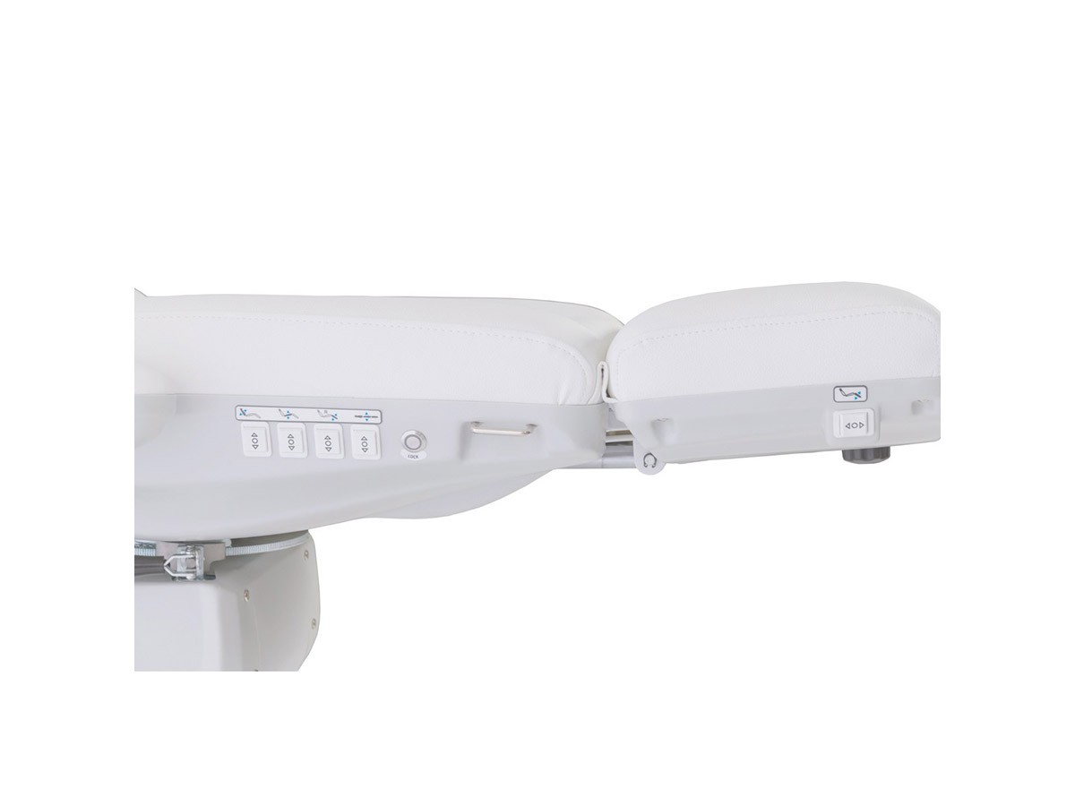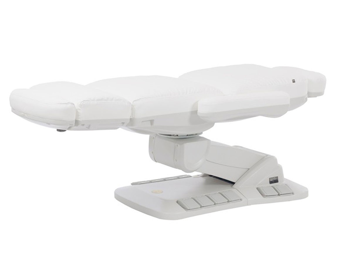 Le fauteuil esthétique TELLA est équipé de 4 moteurs électriques, il permet des réglages précis de la hauteur, l'inclinaison du dossier de l'assise et du repose-pieds. Les accoudoirs rabattables assurent un accès simplifié et une ergonomie optimale pour le praticien. Son siège pivotant à 90° optimise l’espace de travail et facilite la circulation autour du client.