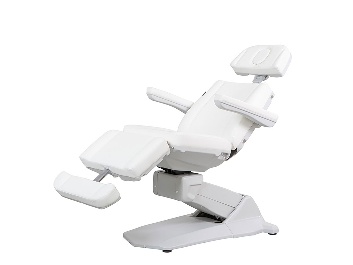 Le fauteuil esthétique MAXI SMART WHITE électrique premium conçue pour une ergonomie optimale. Équipé de 4 moteurs indépendants, il permet le réglage précis de la hauteur, du dossier, de l’assise et du repose-jambes.