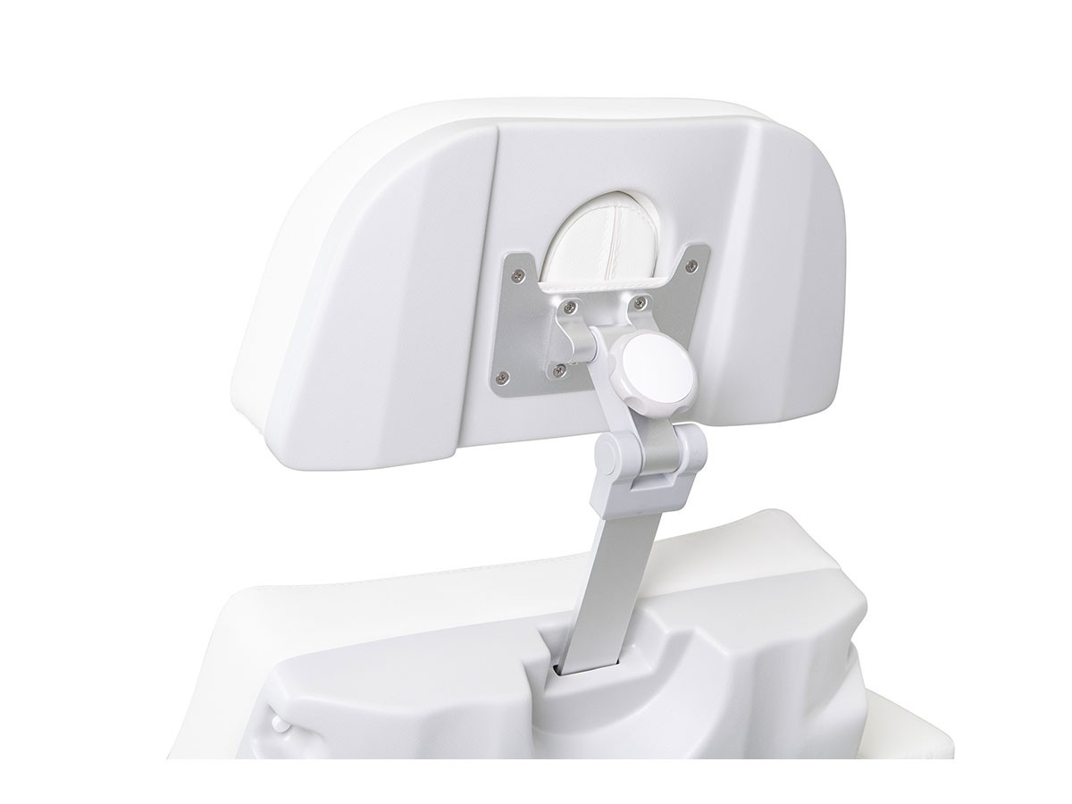 Sa structure renforcée assure une stabilité optimale, tandis que ses accoudoirs pliables ou rotatifs, sa têtière amovible avec ouverture faciale et son repose-pieds extensible s’adaptent à tous les soins.
