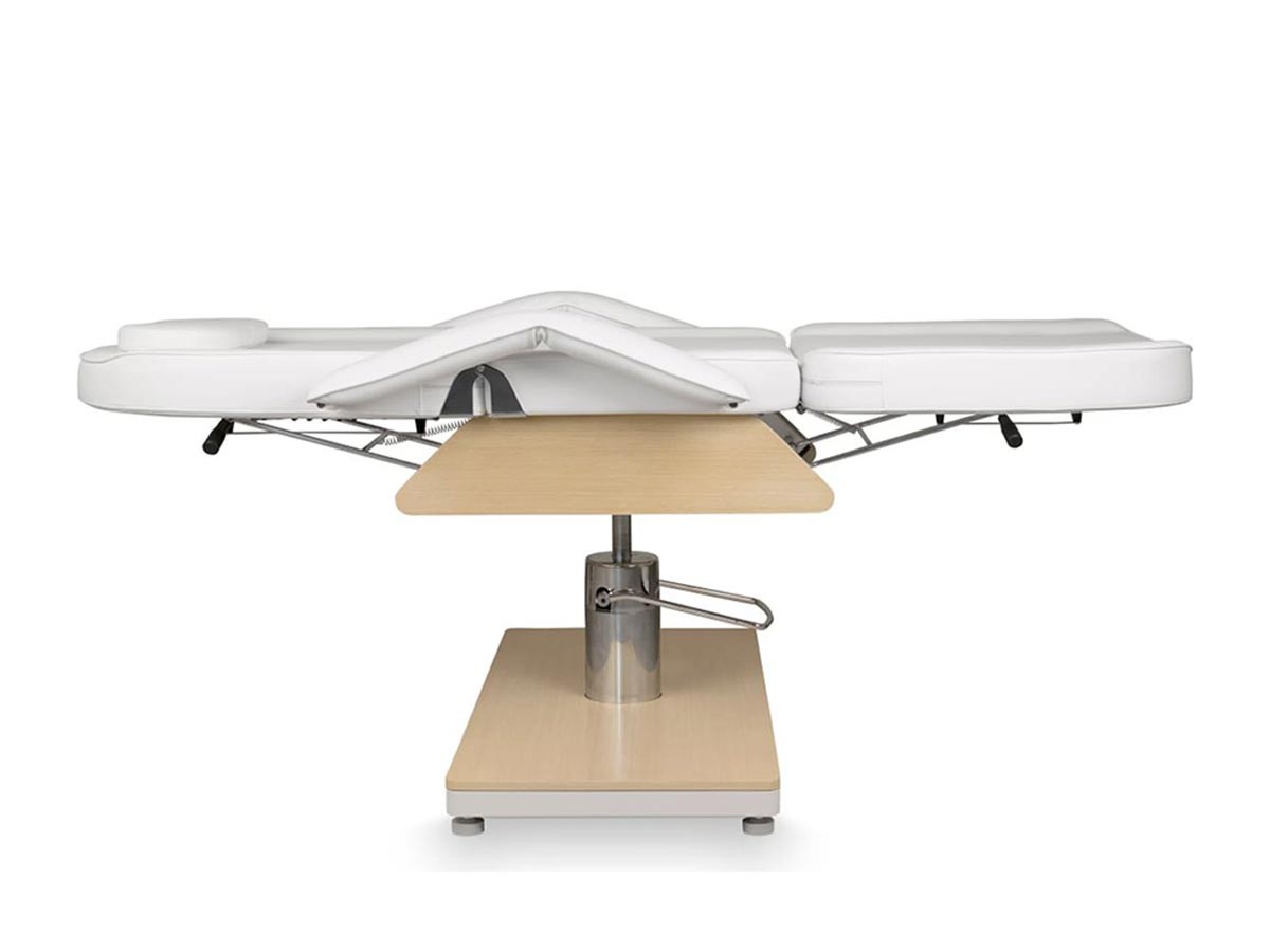 Le fauteuil esthétique GEMINI W OAK est un équipement polyvalent conçu pour les soins esthétiques et les massages. Son dossier réglable par système à cliquet et son repose-jambes ajustable par vérin à gaz permettent une mise en position précise, jusqu’à l’allongement complet.