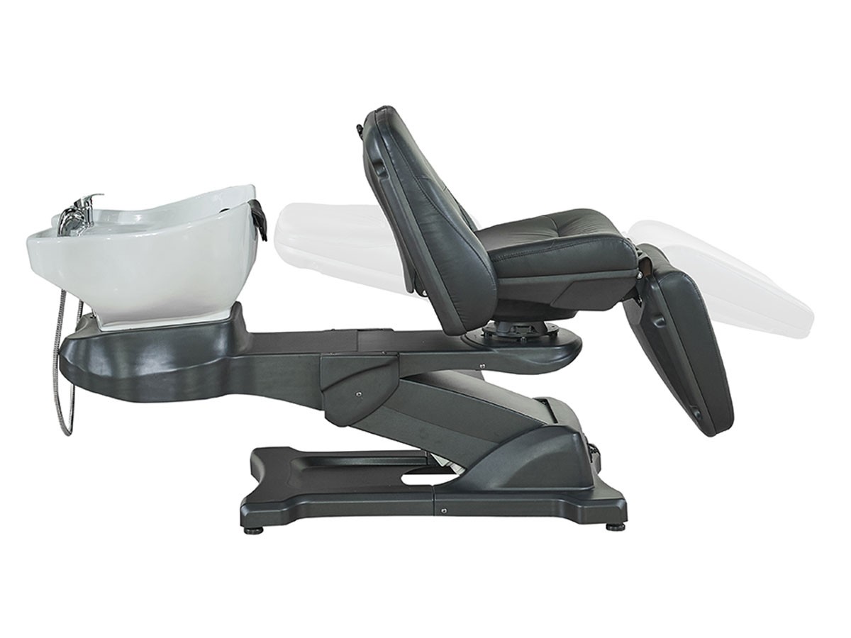 Ce bac à shampoing offre une grande flexibilité d’utilisation : son système de mouvement permet de modifier facilement la position de l’ensemble. Grâce à une pédale de commande, on peut ajuster la hauteur de la structure et de la vasque, ainsi que l’inclinaison du siège et du repose-pieds de manière simultané. La rotation du siège se règle aussi manuellement en fonction de la position souhaitée.