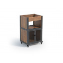 Meuble de rangement ALAN , bois contreplaqué renforcé avec une structure en métal noir. Un bac sur la partie supérieur + une étagère au milieu + une armoire avec des portes en maille métallique, fabriqué à partir matériaux nobles et robustes.