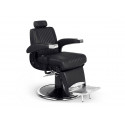 Fauteuil barbier HUGO B, structure et base ronde métallique chromée et revêtement simili-cuir noir est un modèle économique et design.