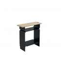 Meuble de coiffure DAFNE, est constitué en tôle courbée et peinte en couleur noir mat, d'un plateau en bois de frêne massif.
