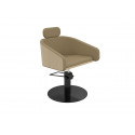 Fauteuil de coiffage ALYA, dossier en contreplaqué bois naturel avec courbure ergonomique et rembourrage en mousse haute densité. Réglable en hauteur par pompe hydraulique.
