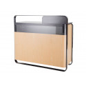 Réception d'accueil ERIN, structure en contreplaqué de bois naturel et structure métallique noir, avec portes et 2 tiroirs à clés.