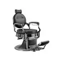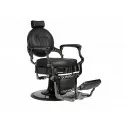 Fauteuil barbier TYLER, structure en fonte d'aluminium couleur chromé avec une base noire et chromé. Une assise en mousse de haute densité tapissée de similicuir noir.