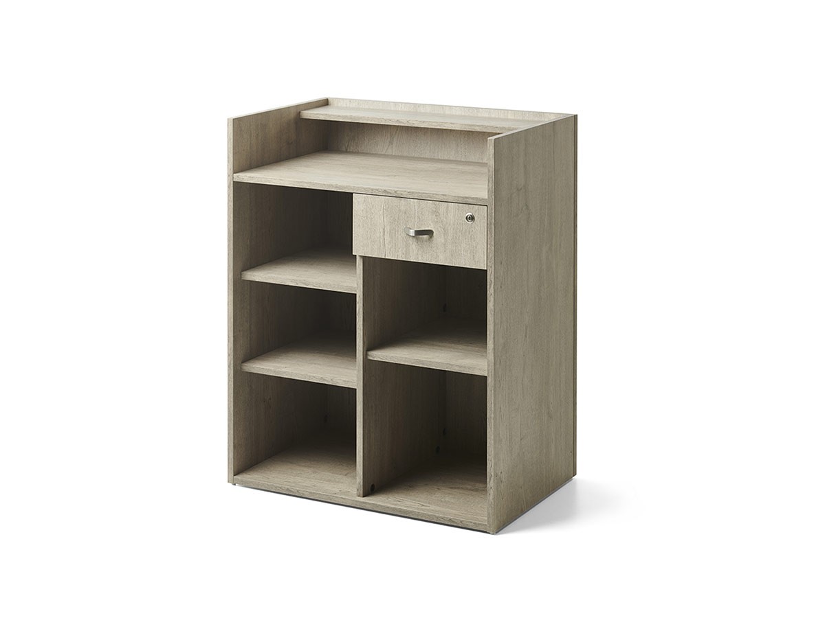 Cette réception caisse GLOSSY, est connue pour sa simplicité, avec un tiroir caisse et plusieurs étagères de rangement. Disponible dans tous les coloris de la gamme ..