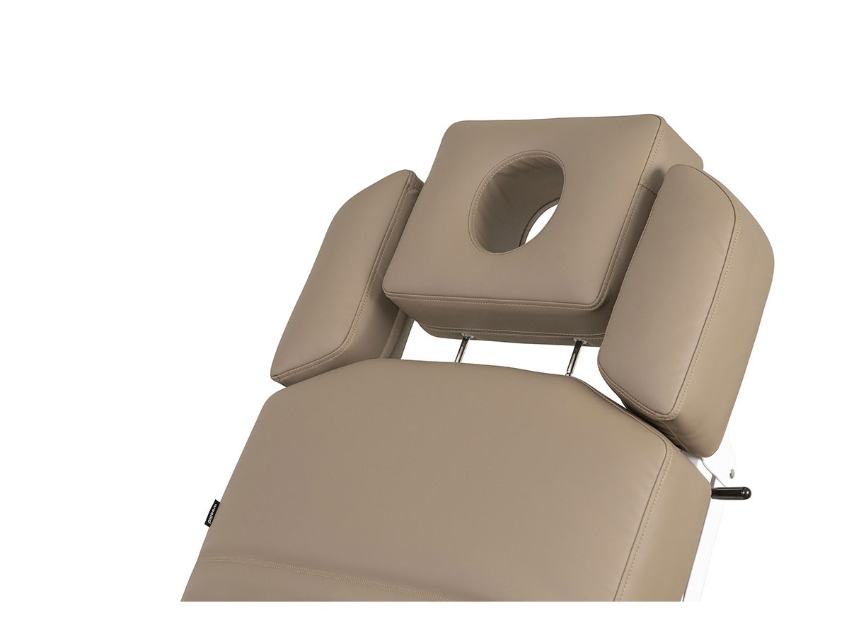 La table de massage spa chauffante LEUS BEIGE est conçue pour un usage professionnel intensif en spa, institut de beauté et centre de bien-être. Dotée de trois moteurs électriques silencieux, elle permet des réglages précis de la hauteur, du dossier et du repose jambes pour s’adapter à tous les soins.