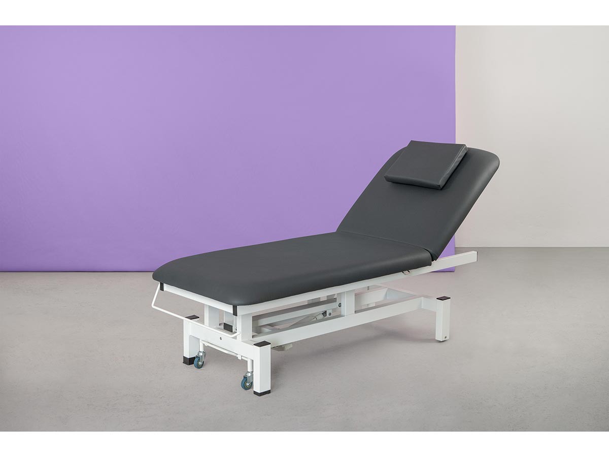 La table de massage électrique VITAL WHITE GREY à 2 sections allie confort, sécurité et robustesse pour les professionnels du bien-être, de l’esthétique et des soins thérapeutiques. Son châssis métallique renforcé assure stabilité et durabilité, tandis que le réglage en hauteur motorisé et le dossier inclinable facilitent l’adaptation à chaque soin.
